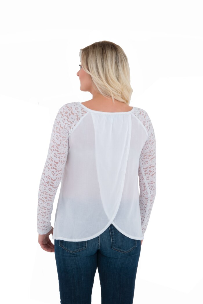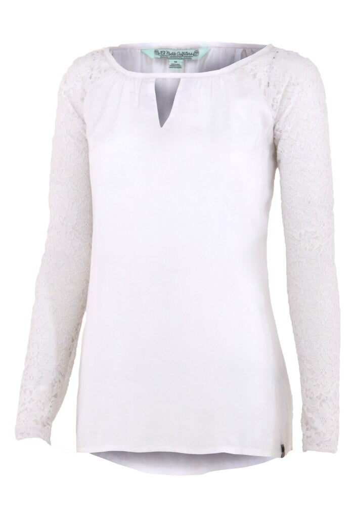 Noble Outfitters Ladies Gypsy Lace Shirt The Noble Outfitters Gypsy Lace Shirt adds feminine style to your summertime look with uniquely designed tulip style back and pretty shirred scoop neckline. This flowing top is ideal for riding with longer back hem, loose bodice for a flattering fit and stretch lace sleeves for mobility. Features: Softly washed 100% rayon Loose fit with flattering sleeves and modern details Easy pullover styling with stretch lace sleeves Longer length for riding and comfort Scoop neckline Tulip back Machine wash, line dry