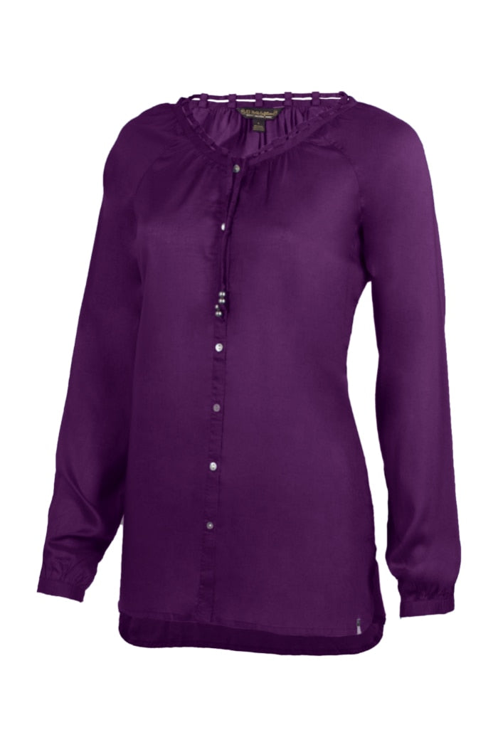 Noble Outfitters Charmer Peasant Top Sweet gathered neckline, mother of pearl buttons, and decorative beads combine perfectly in the Noble Outfitters Charmer Peasant Top. You'll appreciate the loose fit with flattering sleeves and such modern details as the longer rounded hem. Made from softly washed rayon, the Charmer Top flows freely for optimal comfort. Features: Mother of pearl buttons front and cuff closure Drawcord tie with decorative beads Rounded hem Loose fit with flattering sleeves and modern details Dropped back hem for full coverage Item Specifications: Material: Softly washed 100% rayon