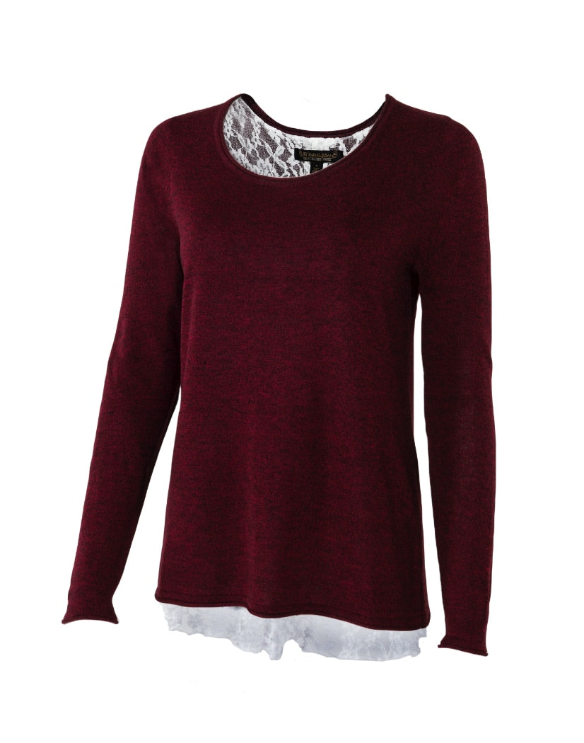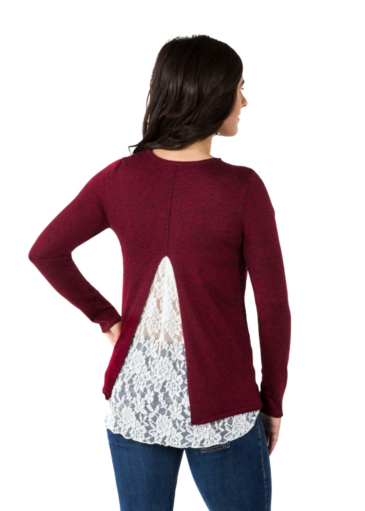 The Noble Outfitters™ Tory Lace Sweater is business in the front, party in the back! The lightweight, fine gauge knit with a loose fit has a sweet lace inset detailing in the back, instantly elevating your everyday style. Hand wash only.
